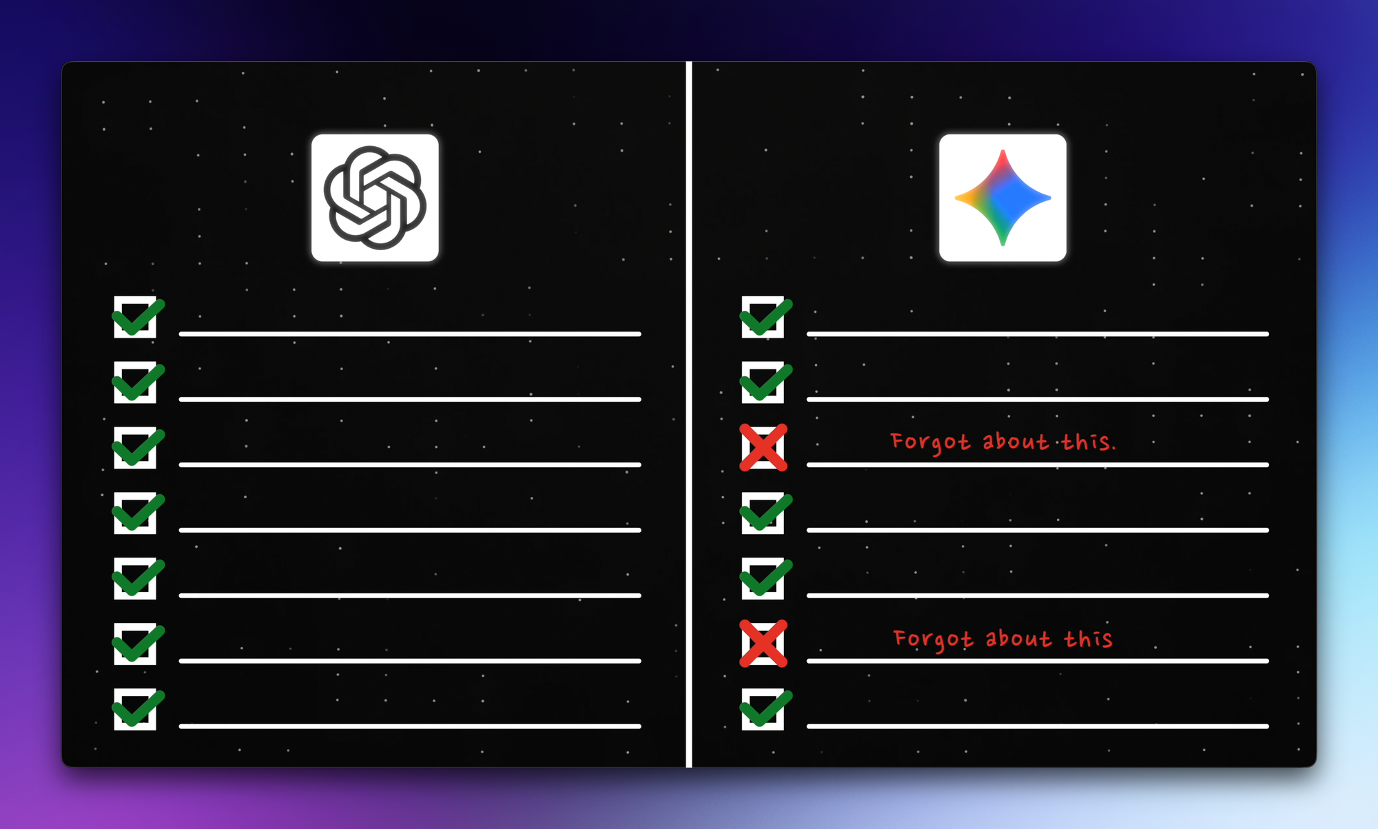Long story short, ChatGPT drops fewer balls when you hand it a complex checklist. Other models might match its raw intelligence, but give them a lengthy set of instructions and they will sometimes skip a step or decide they know better.