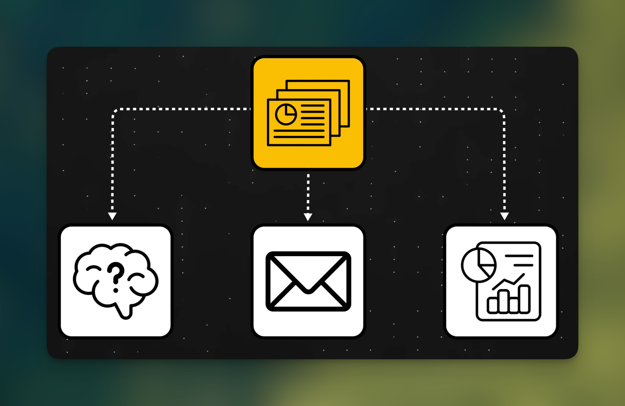 The sales team can turn an industry report from marketing into cold emails for client outreach, a LinkedIn post to generate leads, and a list of talking points for their next call.