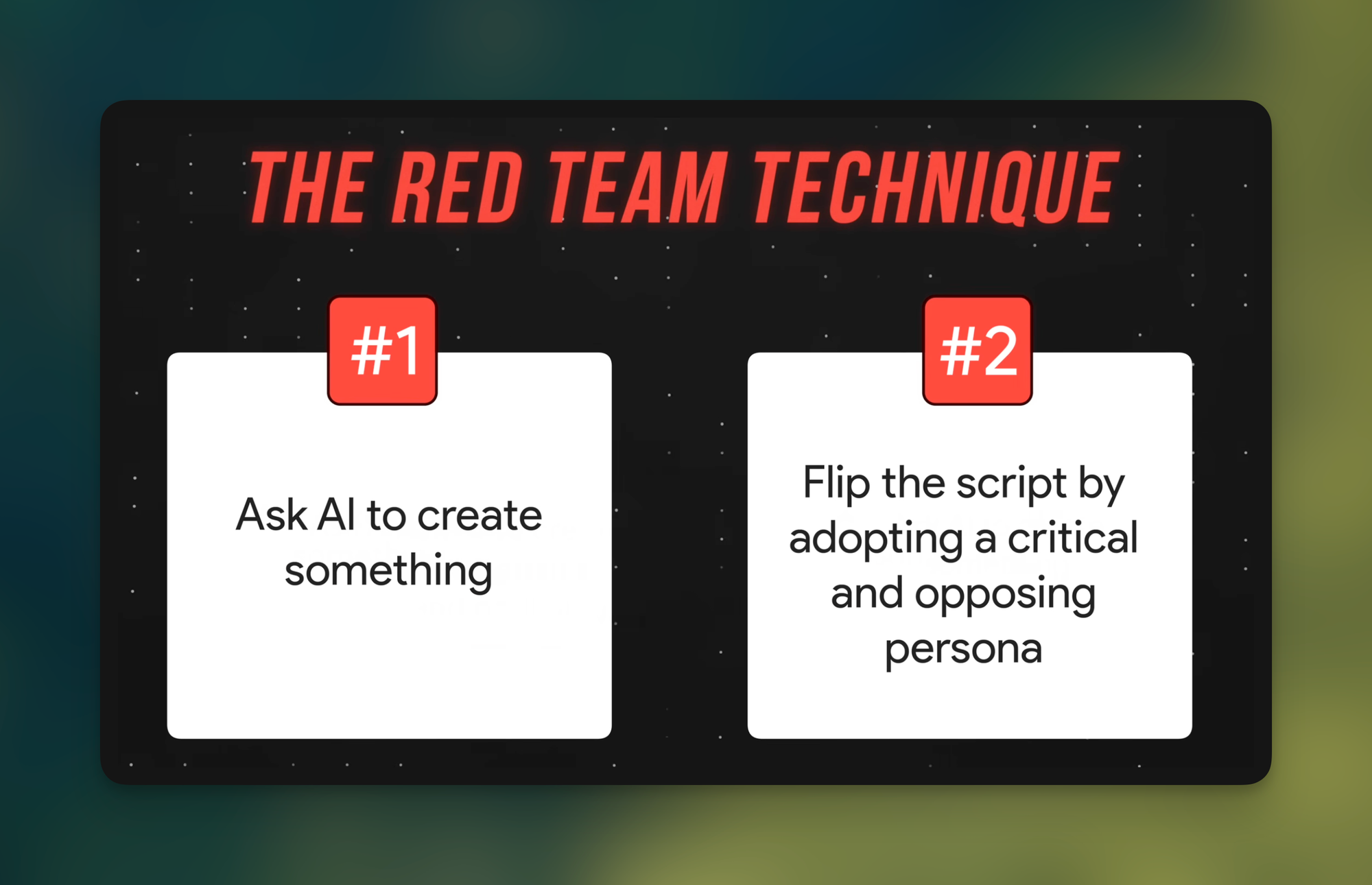 Why this works: The red team technique helps you anticipate challenges, giving you the opportunity to strengthen your message before it reaches a real-world audience.
