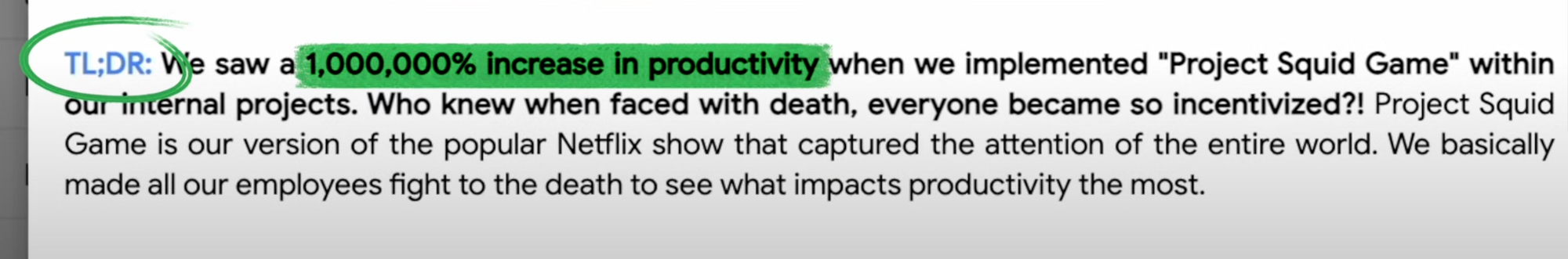 Include a "too long, didn't read" or "tl;dr" section at the beginning. This section should provide a concise summary of the email, highlighting quantifiable results and benchmarks. This allows busy recipients to grasp the main points quickly