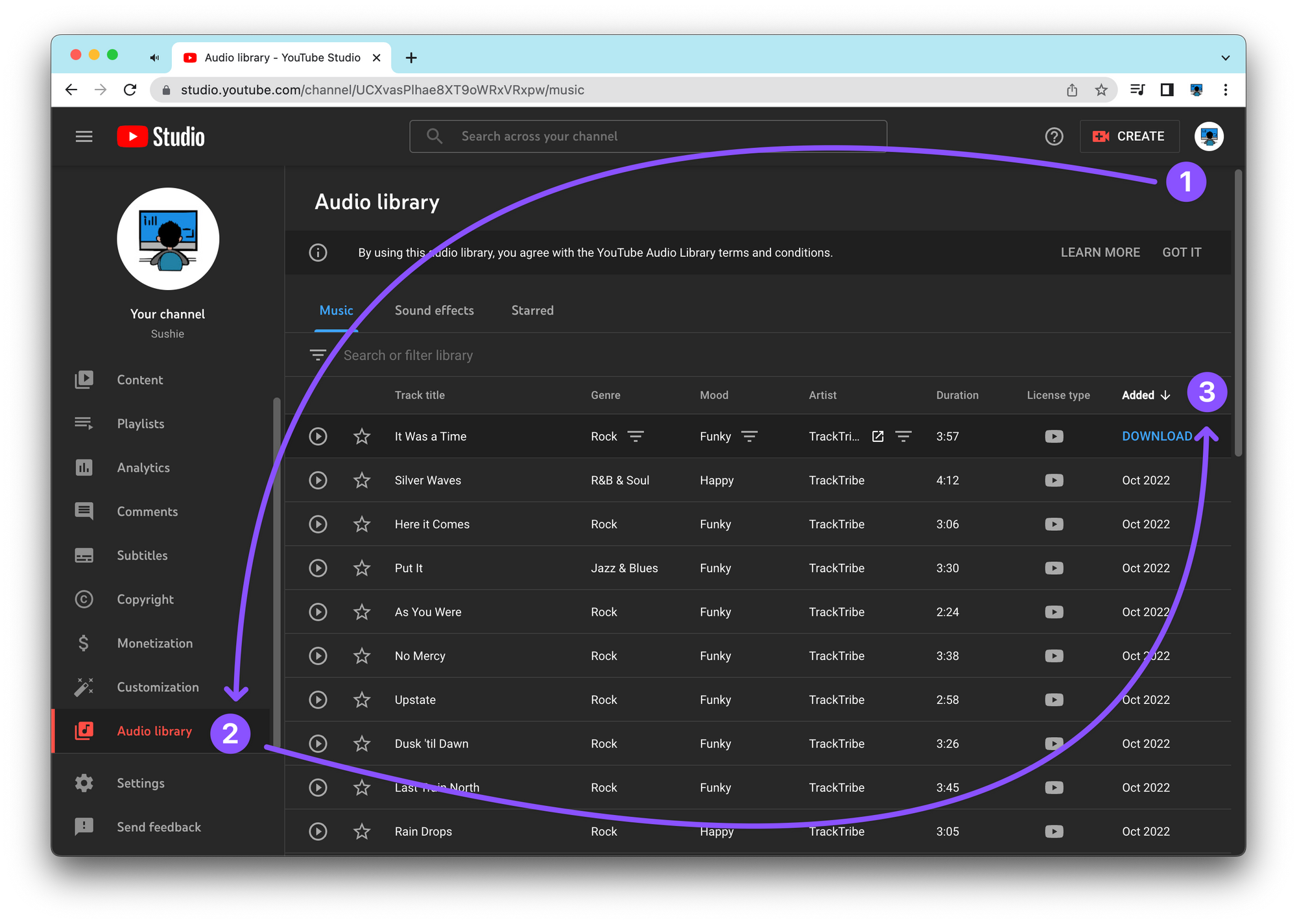 Click on your profile icon in the top right corner > select “YouTube Studio”