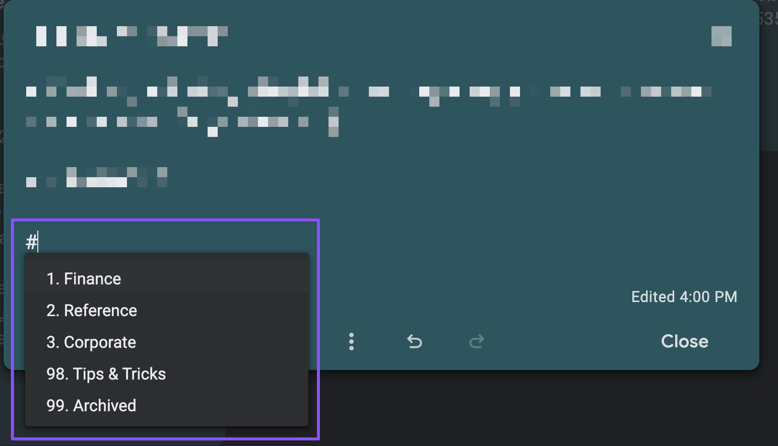 Pin the relevant note in Google Keep and color-code it in BLUE