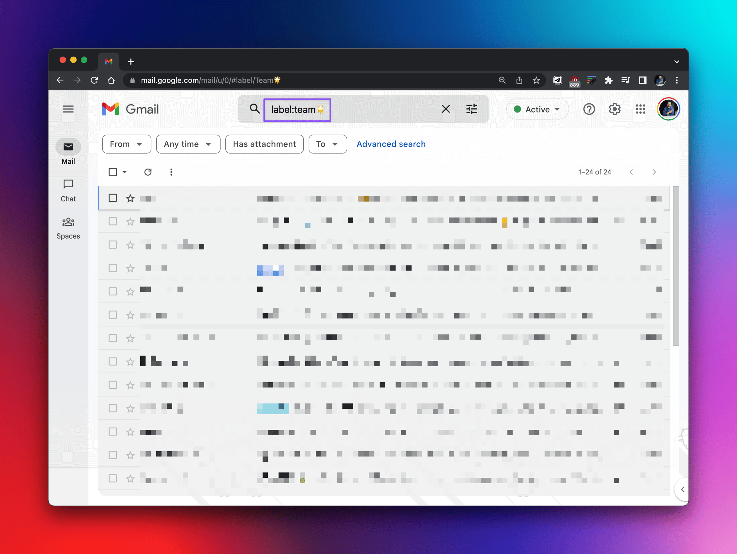How it works: ‘has:attachment‘ returns all emails with attachments. The real power comes when you combine it with other operators. Try ‘from:marketingperson@company.com has:attachment‘ to find all attachments from your marketing team.