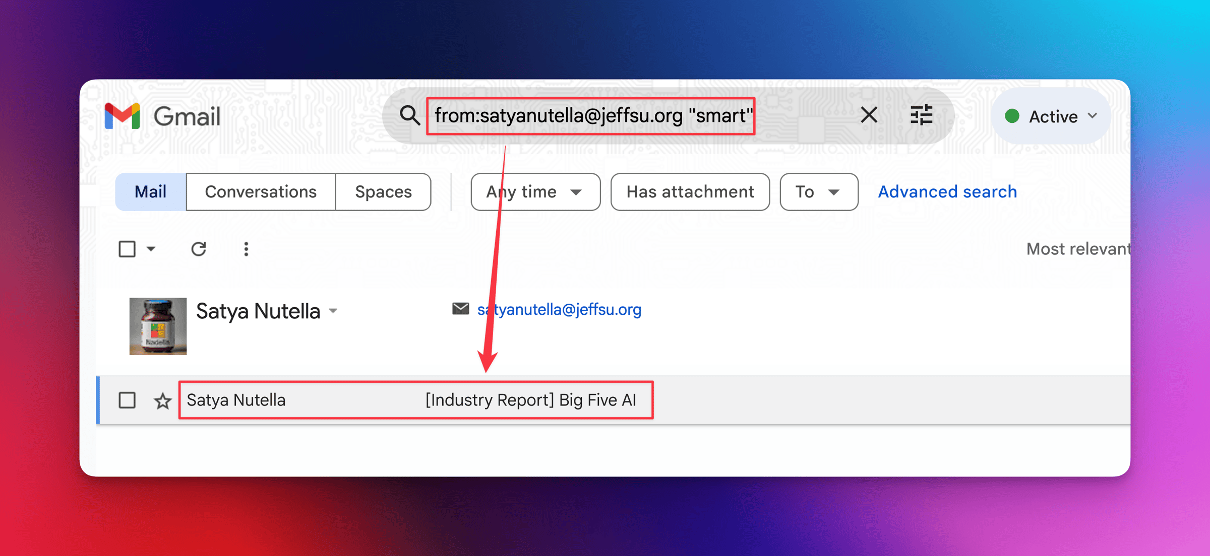How it works: Type ‘from:john.smith@company.com “Q4 budget”’ and Gmail finds that exact email from John about the Q4 budget.