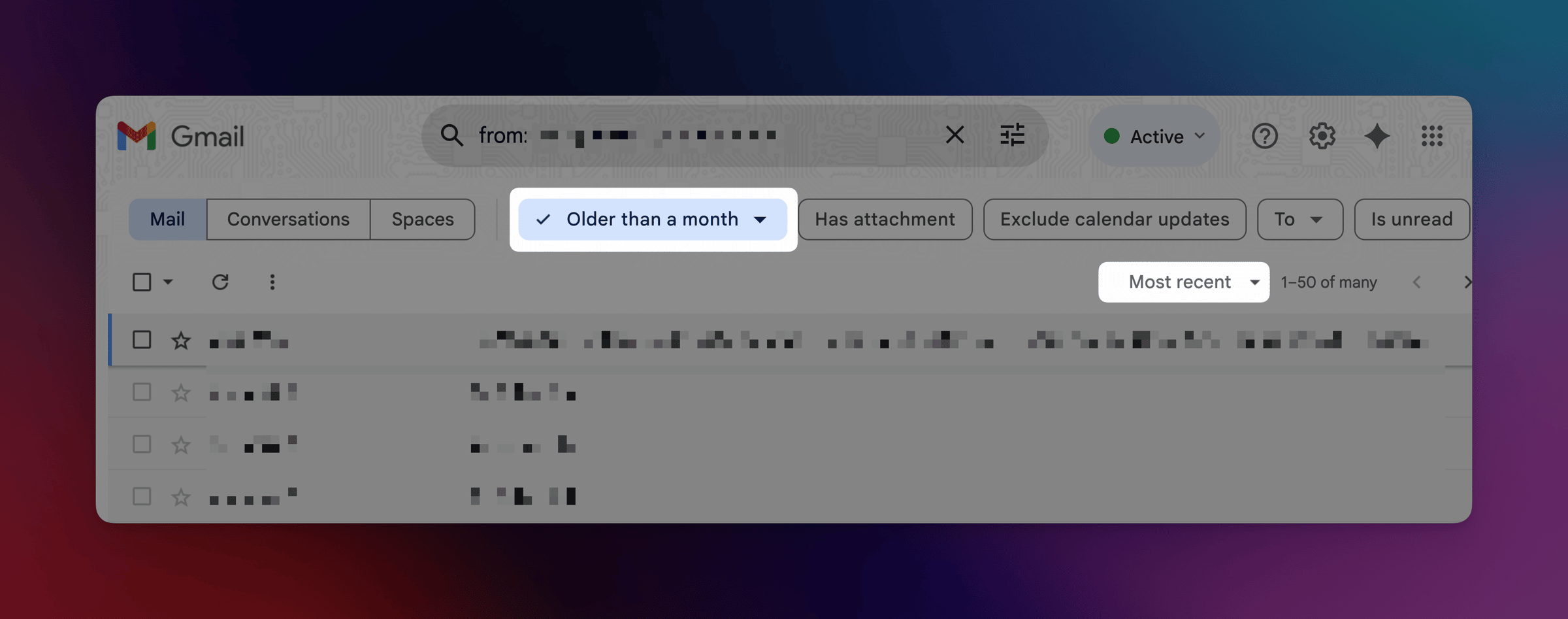 After you run any search, look below the search bar. Gmail shows these filter chips that let you narrow things down even further without typing anything else.