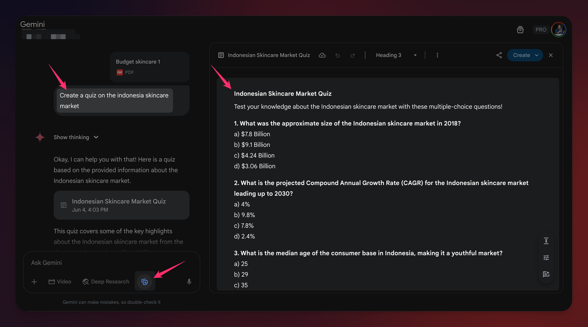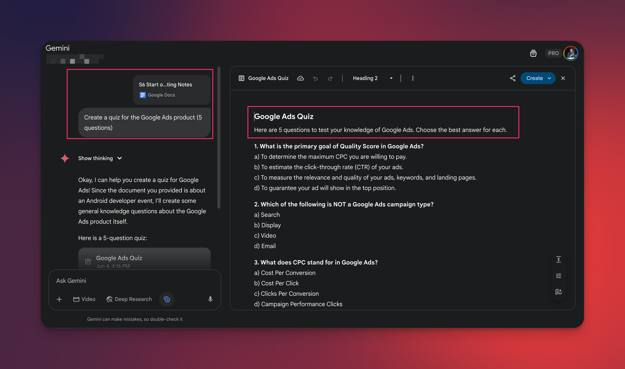 Gemini analyzed the slides and generated relevant, accurate quiz questions for each product - questions I couldn't have written myself without weeks of product deep-dives.