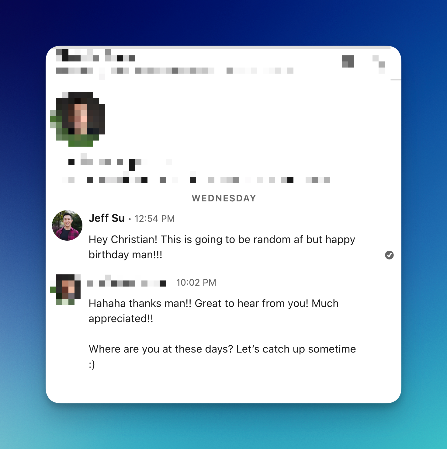 He’s a schoolmate I haven’t seen in over 9 years, we moved the conversation over to Instagram, and now we’re making plans to catch up!