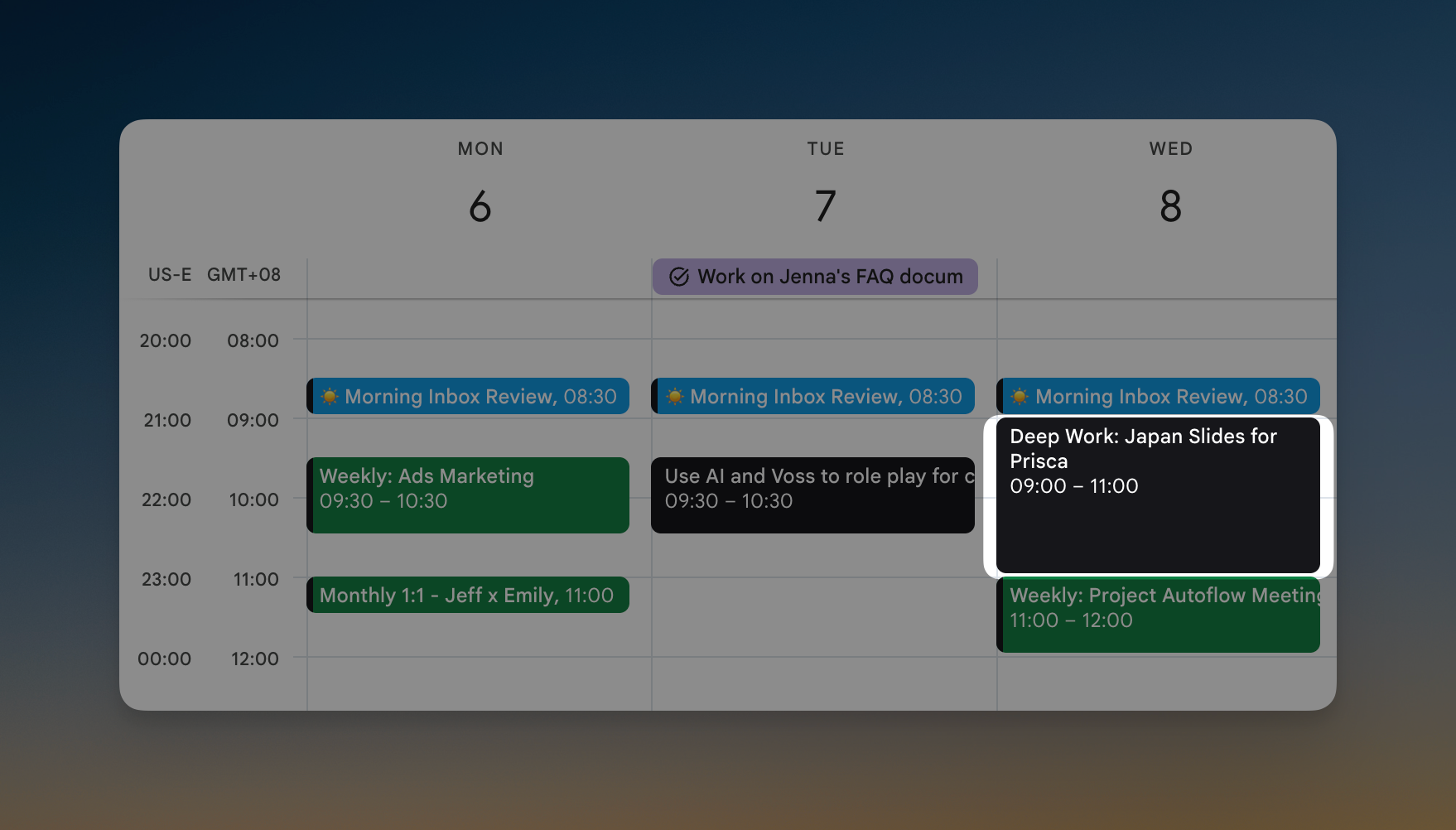During your evening review session before leaving the office, you check your task list, see the request, and immediately block two hours on your calendar for Wednesday morning. Only once that time is blocked can you mark the original task as complete, because it has now transformed into a concrete commitment on your calendar.