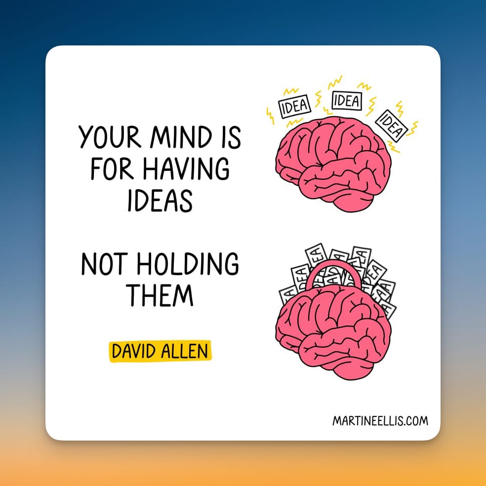 As we've covered, our brains are for having ideas, not holding them. You need to offload those ideas onto an external platform as quickly as possible, whether that's an app or a notebook.