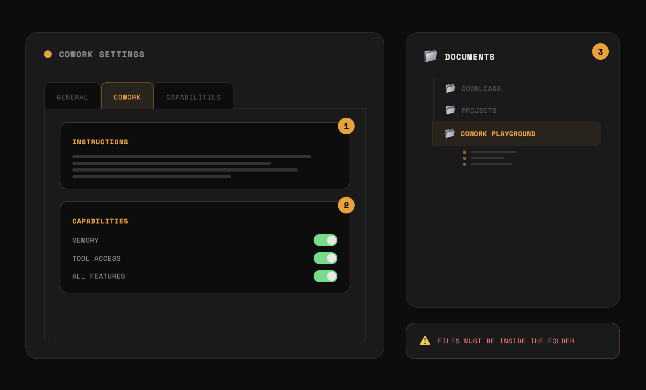 One thing to know: Cowork is strict about file access. If you drag a file from Downloads into Cowork, it can't read it. Files need to already be inside the Playground folder.