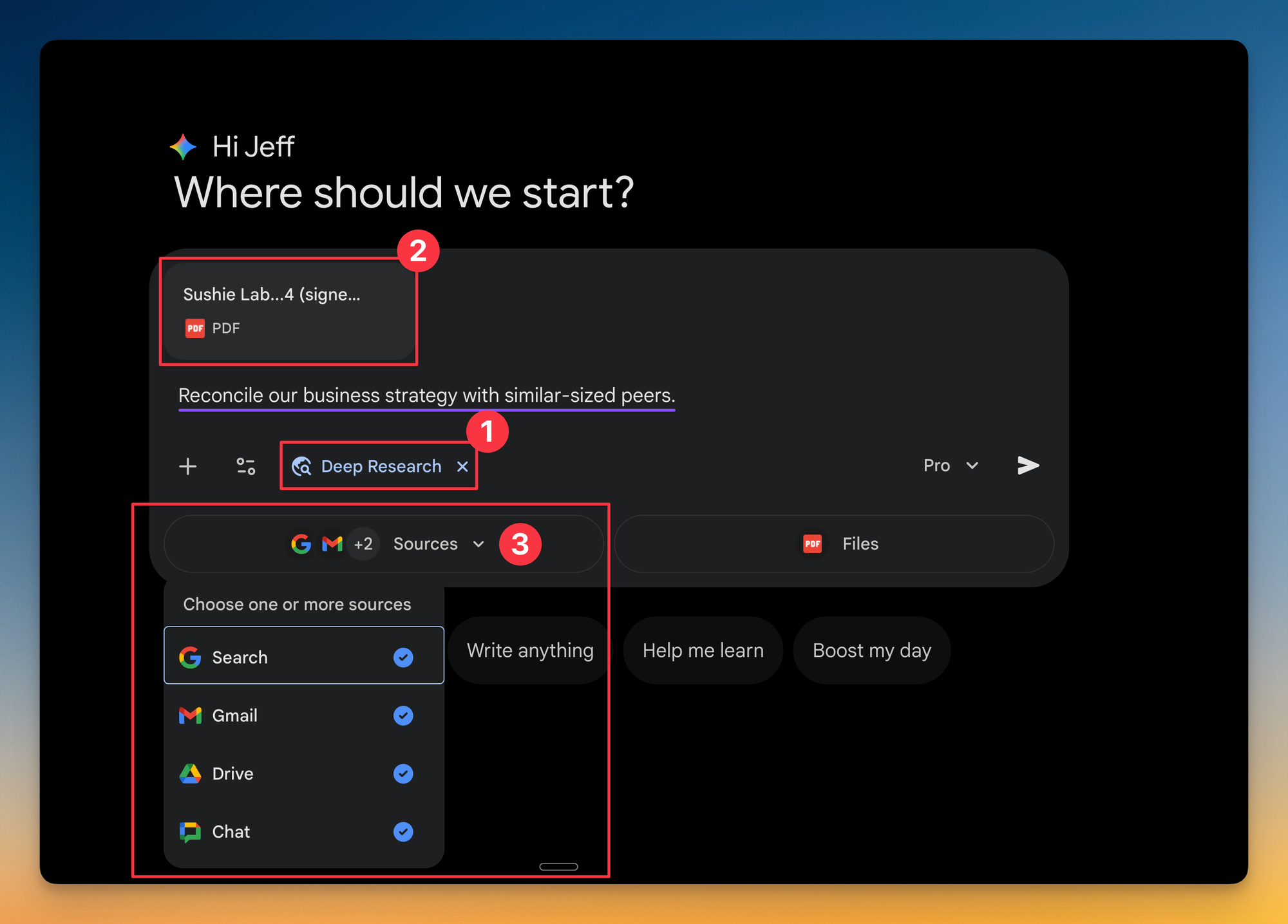 With Deep Research enabled, you can prompt Gemini to search the web for supplementary information, like what competitors are doing in this space, relevant industry benchmarks, or recent market shifts. The result is a comprehensive brief that gives your new teammate both the internal context and the external landscape they need to hit the ground running.