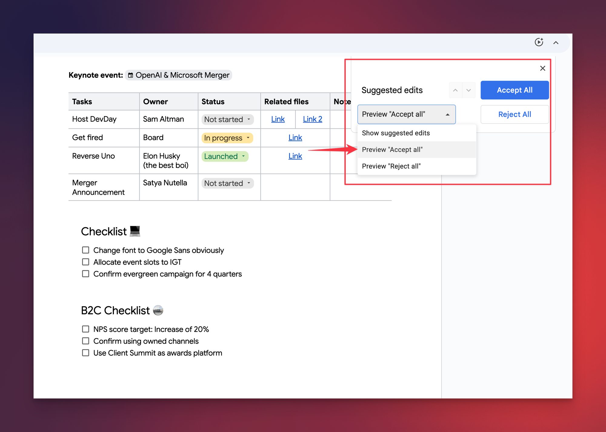 Hey friends - This is going to sound extremely silly, but back when I first joined the Product Marketing team at Google, the single biggest annoyance I faced was going through "Suggested Edits" from 5+ teams I was working with.