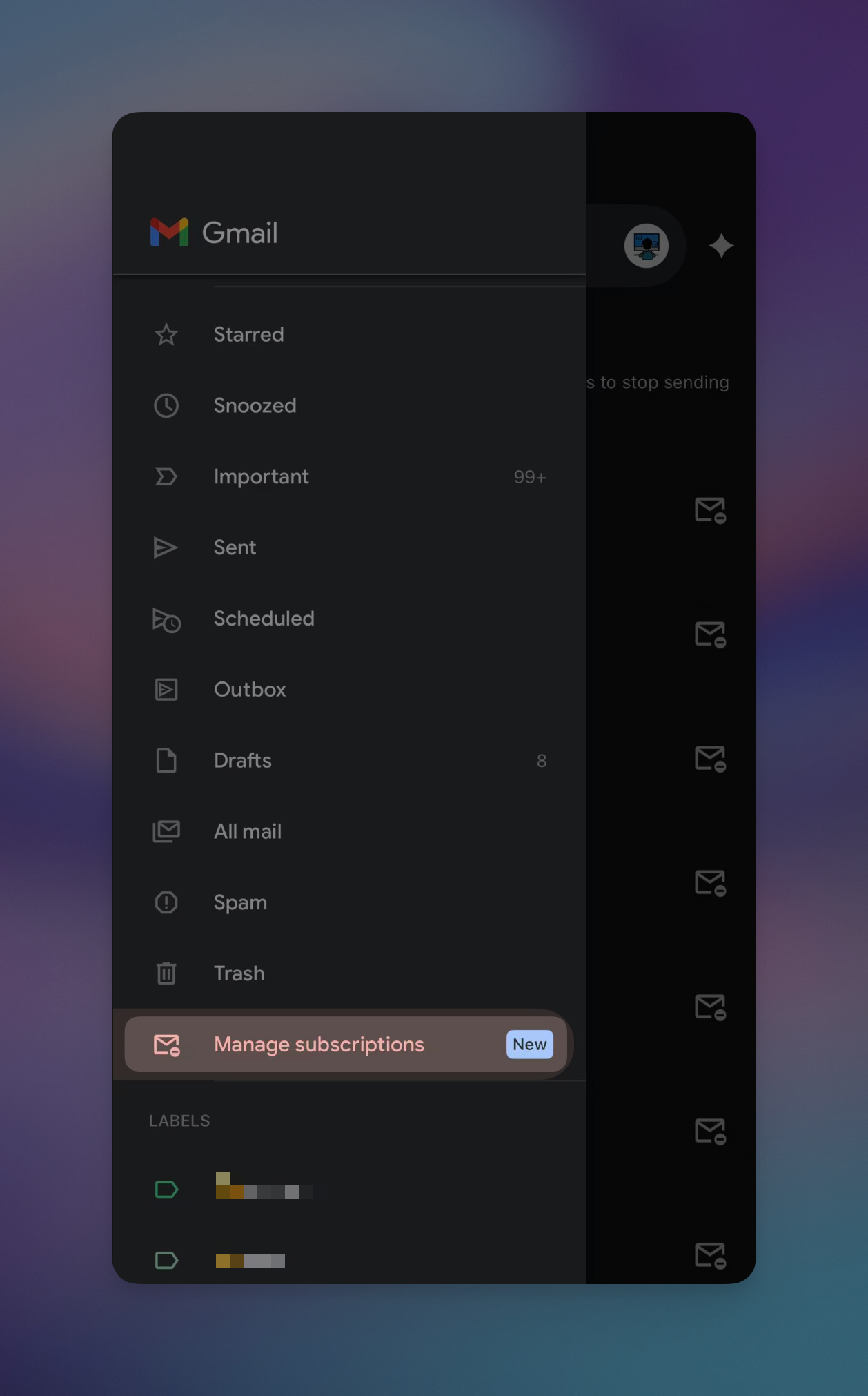 Gmail added a Manage subscriptions section to the sidebar. It shows every active subscription sorted by who's emailing you the most (prepare to be horrified), along with how many emails they've sent in the past few weeks.