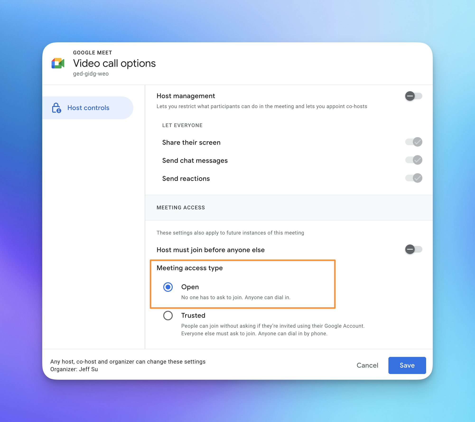 This is super useful if you have a meeting with a lot of external attendees, and you don’t want to “Admit” or “Approve” each one: