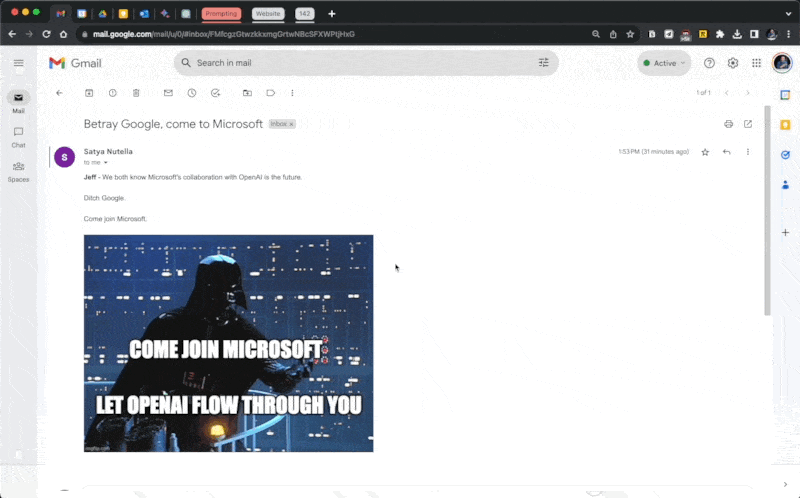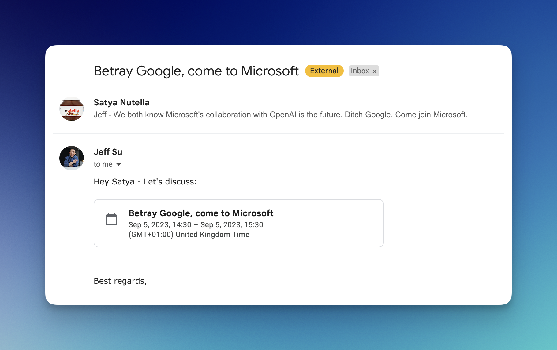 A new Calendar event will open up in the companion bar with a pre-filled title, and you’re now just 2 clicks away from scheduling a meeting!