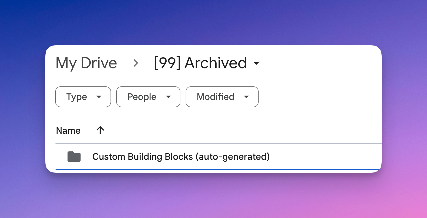 Google Drive will auto-generate a folder with all your Custom Building Blocks: