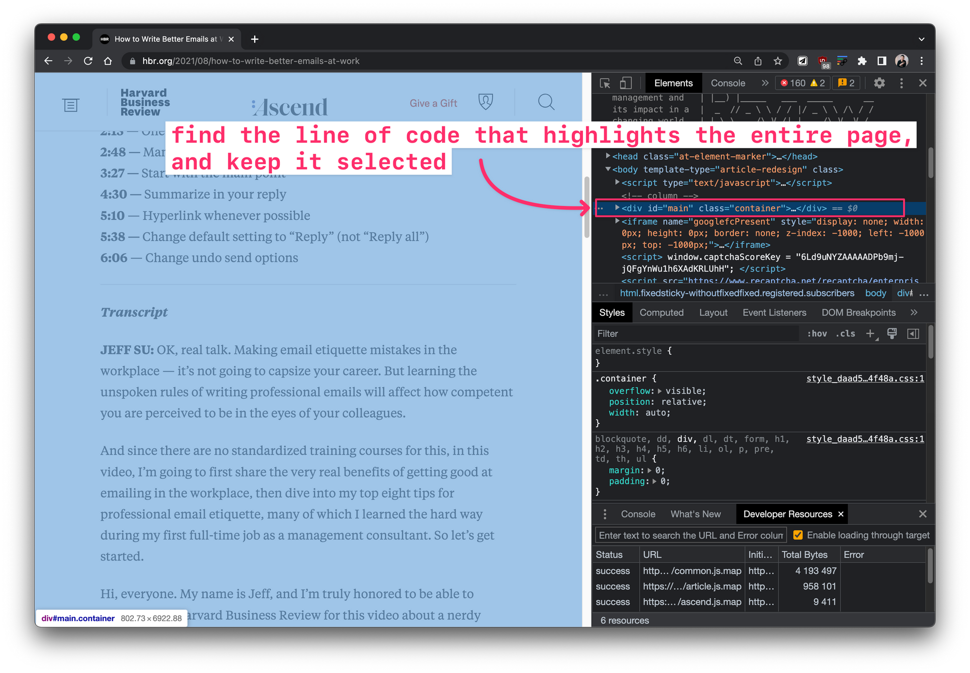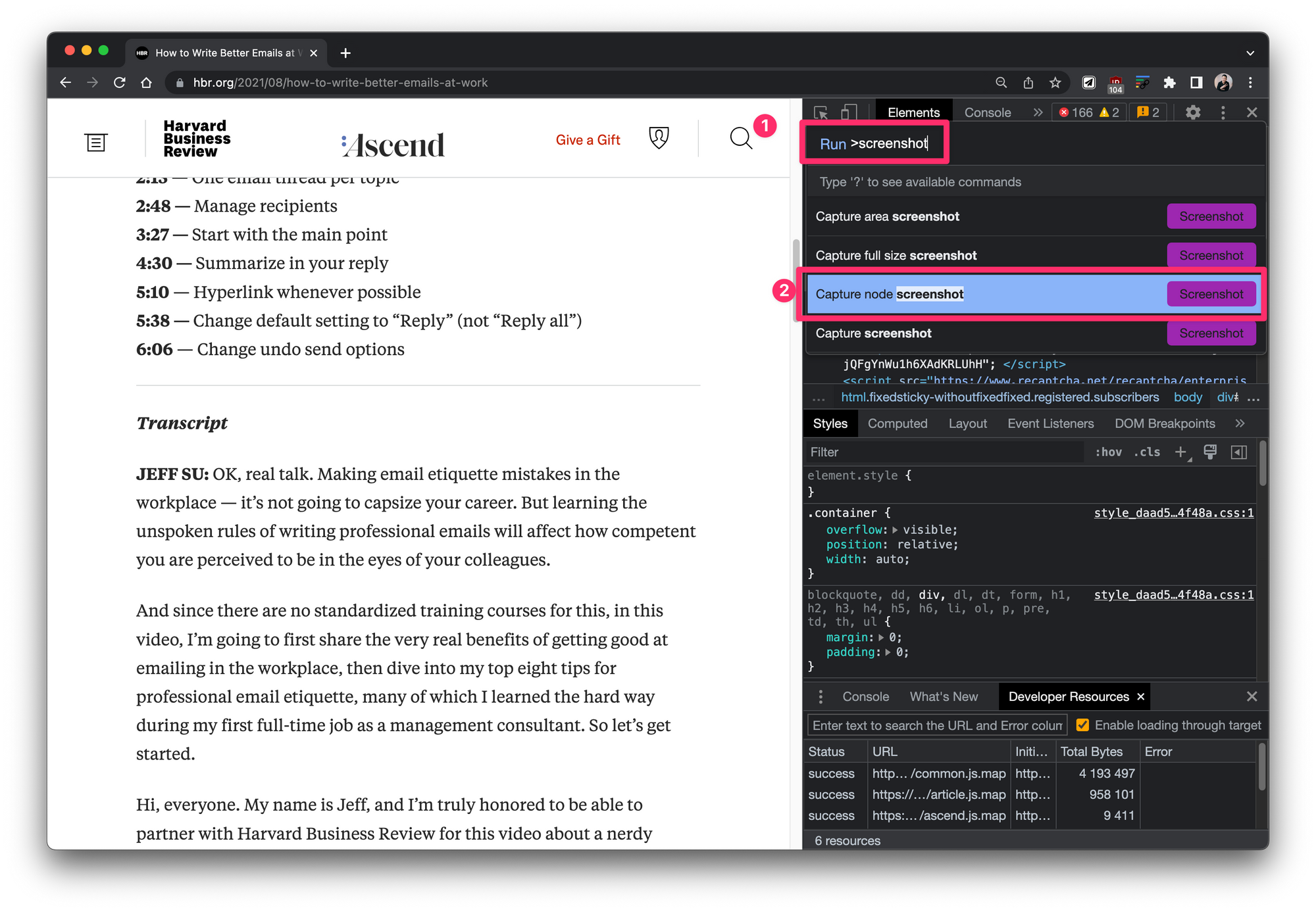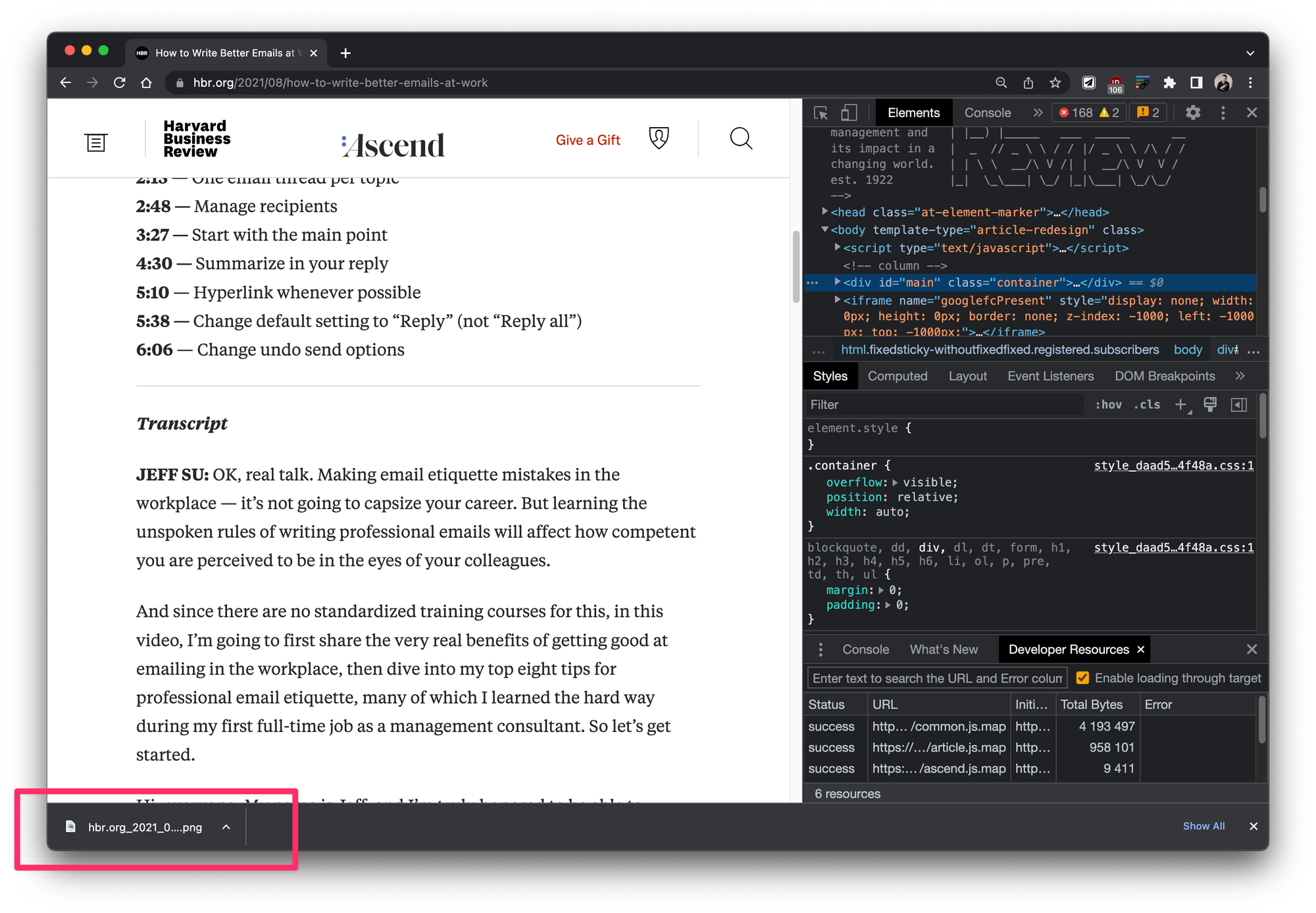 - Go to a webpage where you want to take a full page screenshot (let’s use my HBR article as an example 😉)