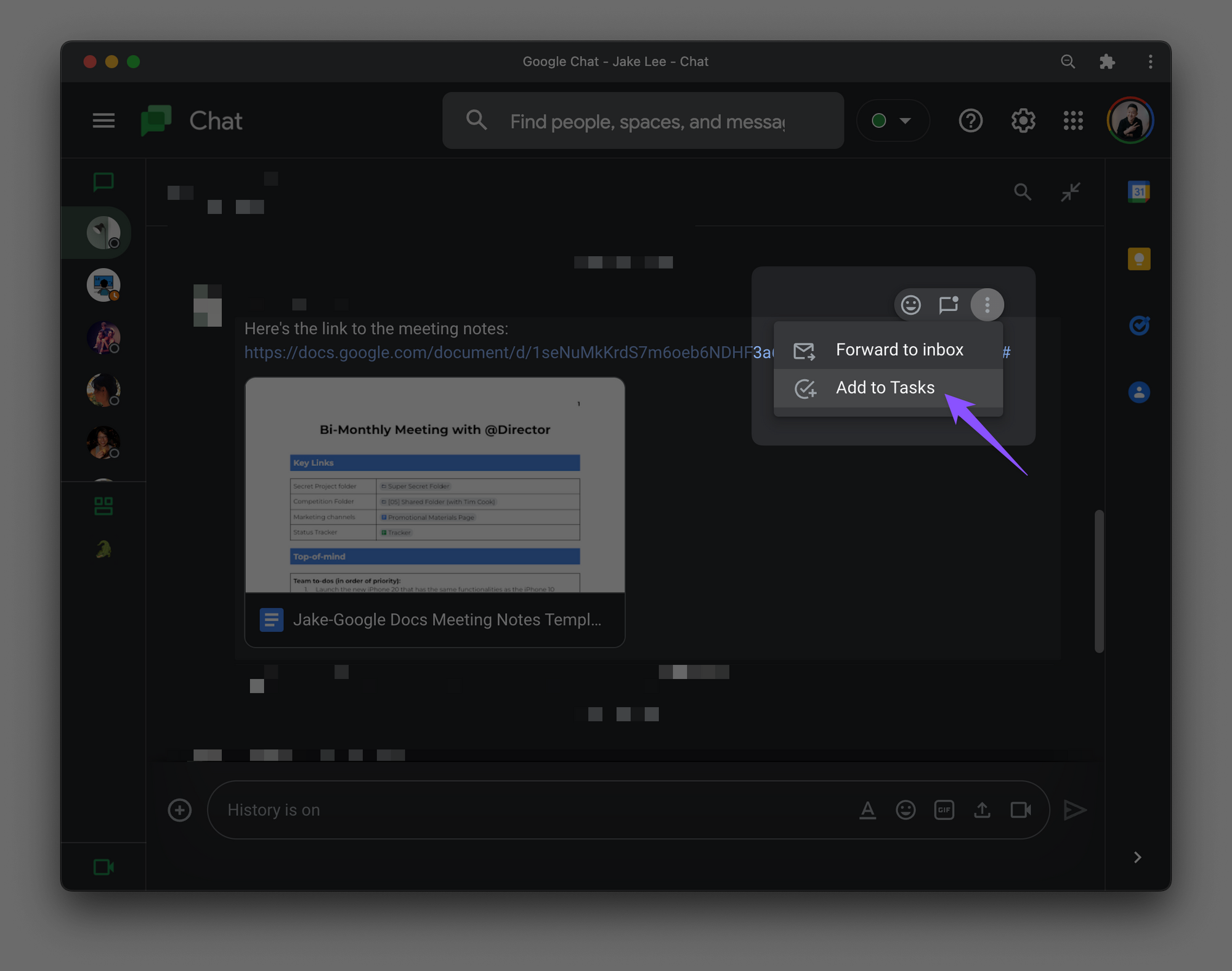 With this tip, there’s no need to toggle among 3 different apps (Google Chat, Tasks, Calendar) when capturing a to-do item!