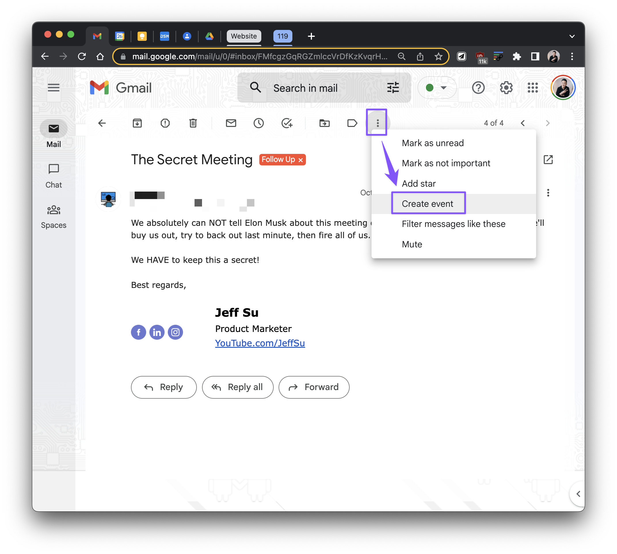 Within an email thread with multiple attendees, click the 3 dots > Create Event