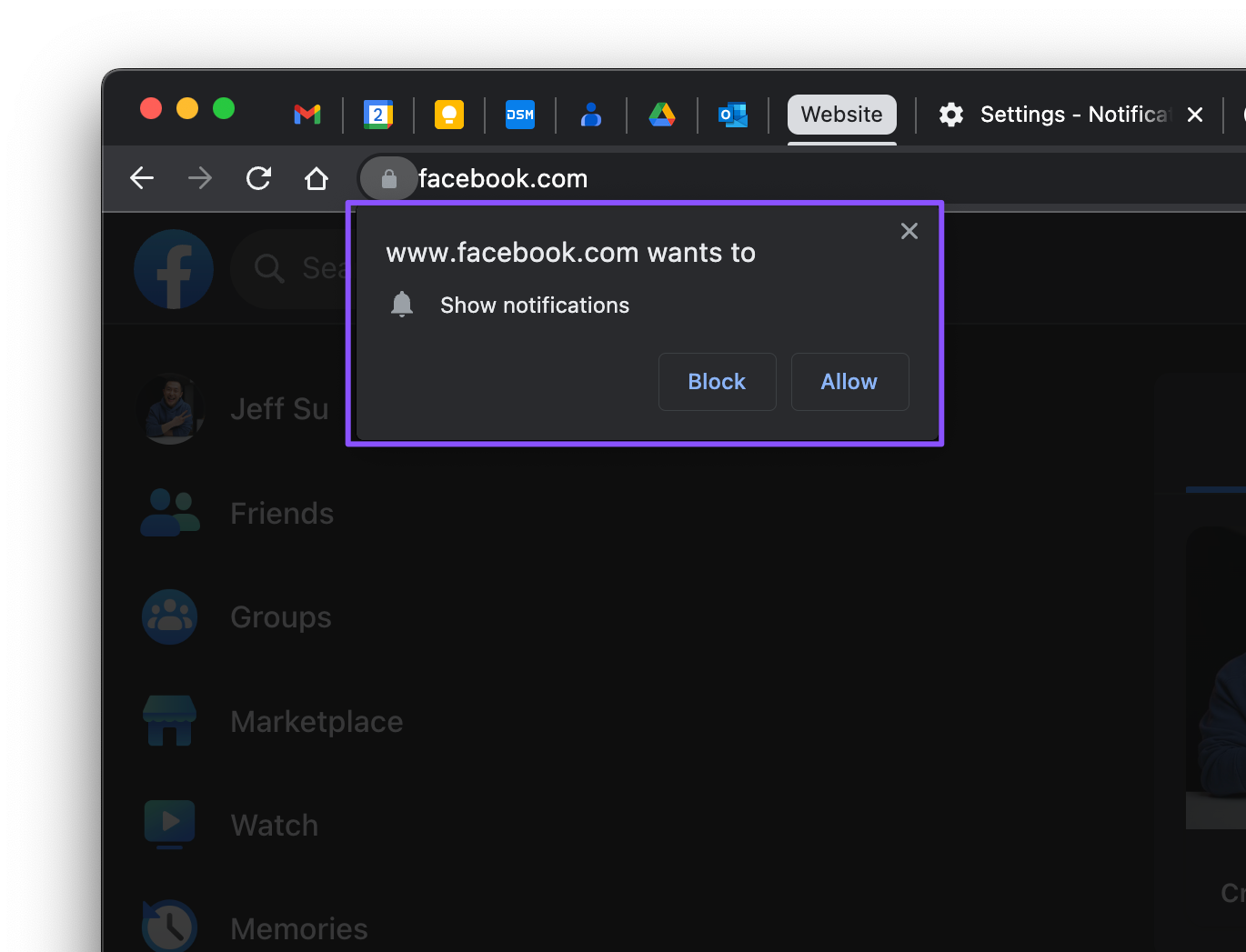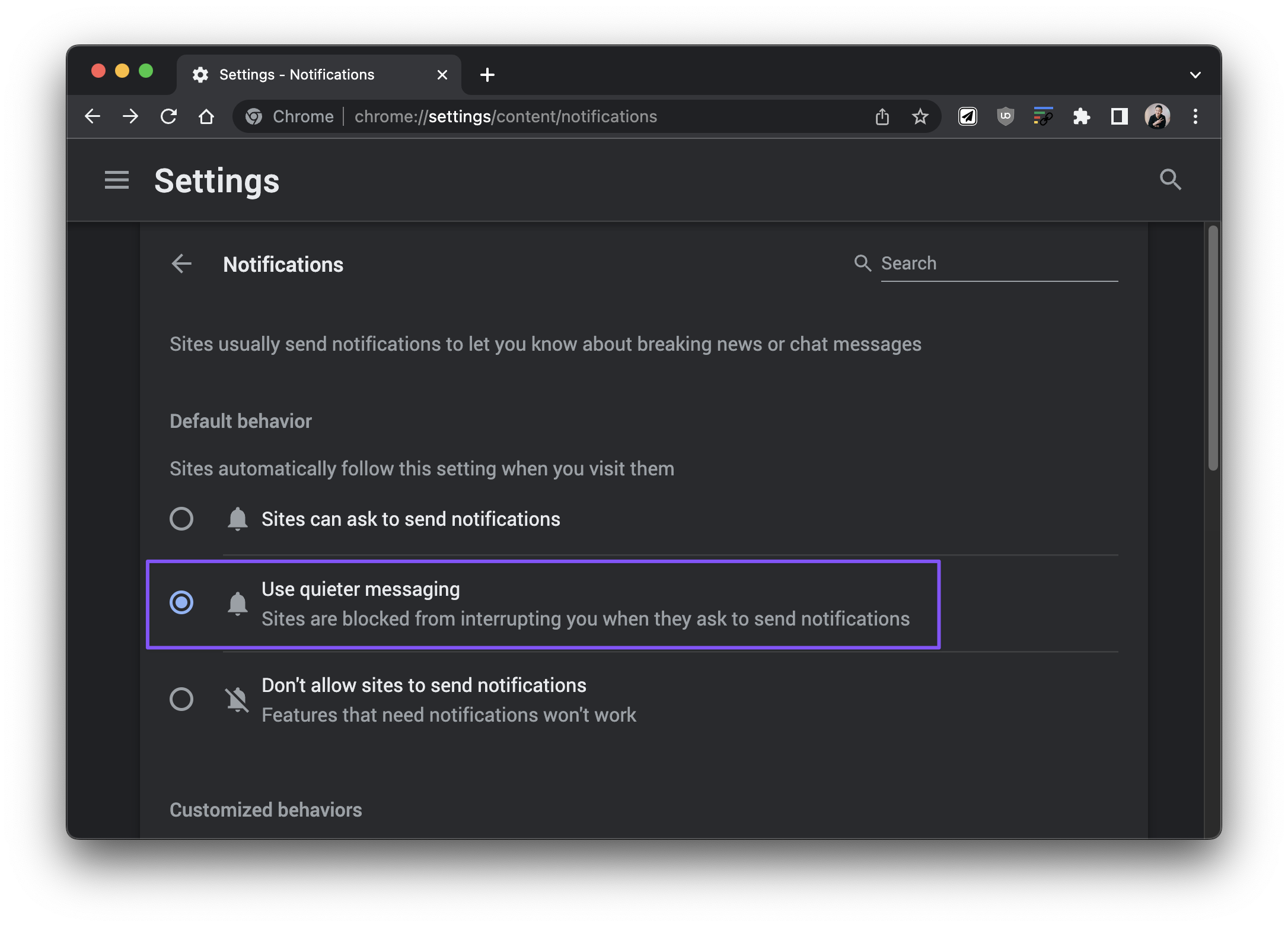 Note: You can use the more extreme “Don’t allow sites to send notifications” BUT this might affect video conferencing platforms (e.g. Google Meet, Zoom)