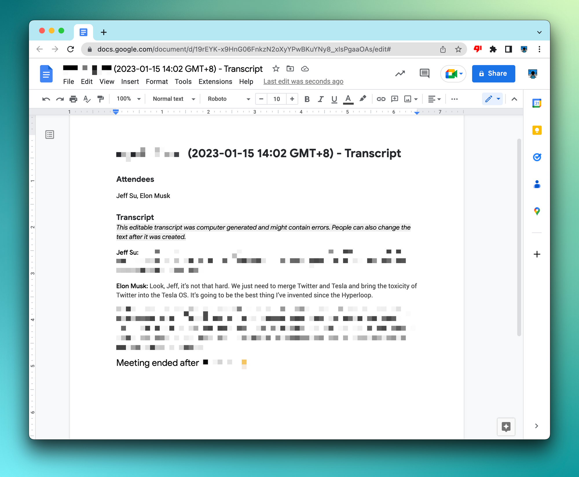 After the meeting ends, the transcript initiator will receive a link to the transcription document via email