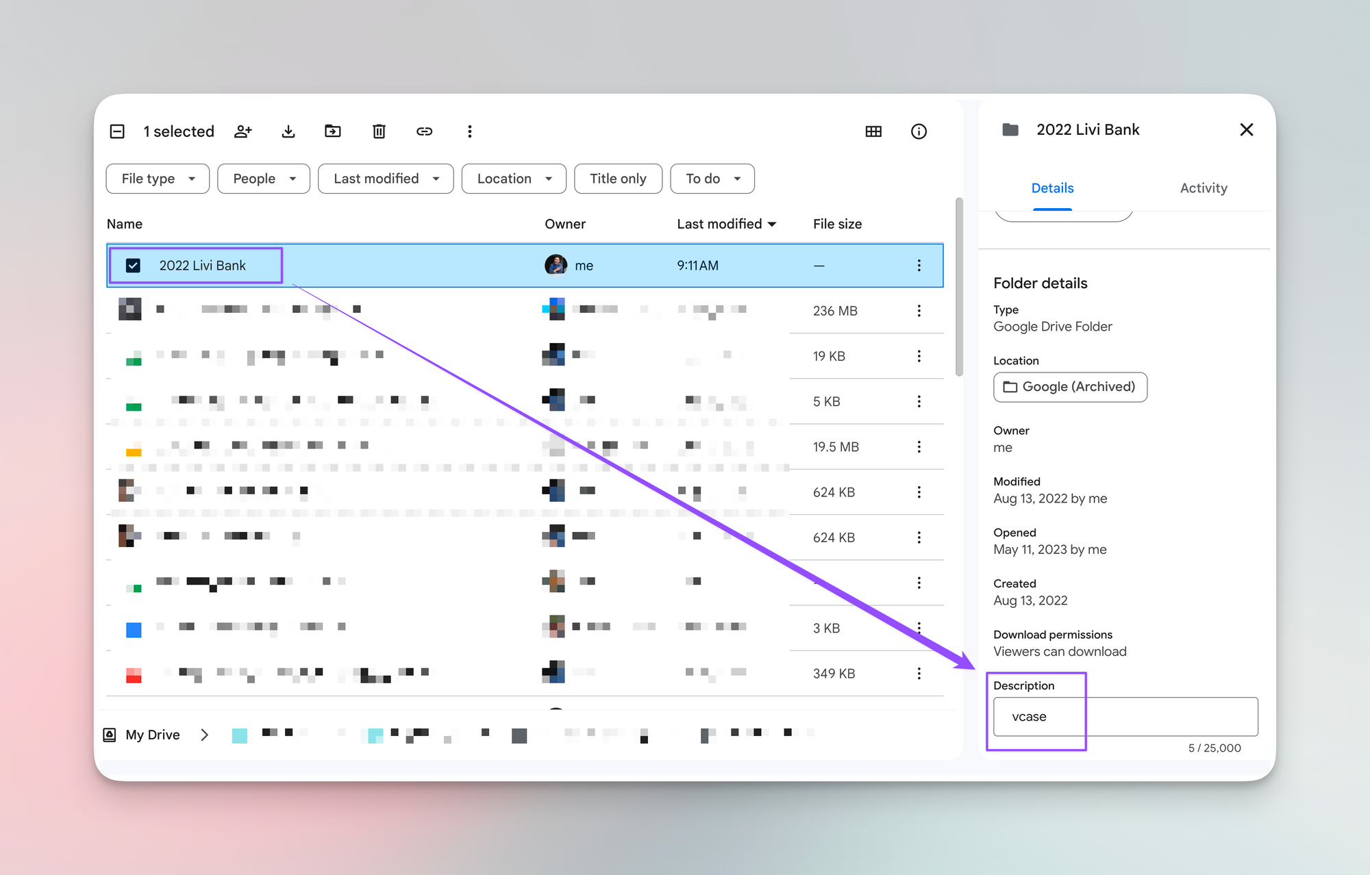 The best part? You can search for that description in the Google Drive search bar and it’ll still show up in the results!