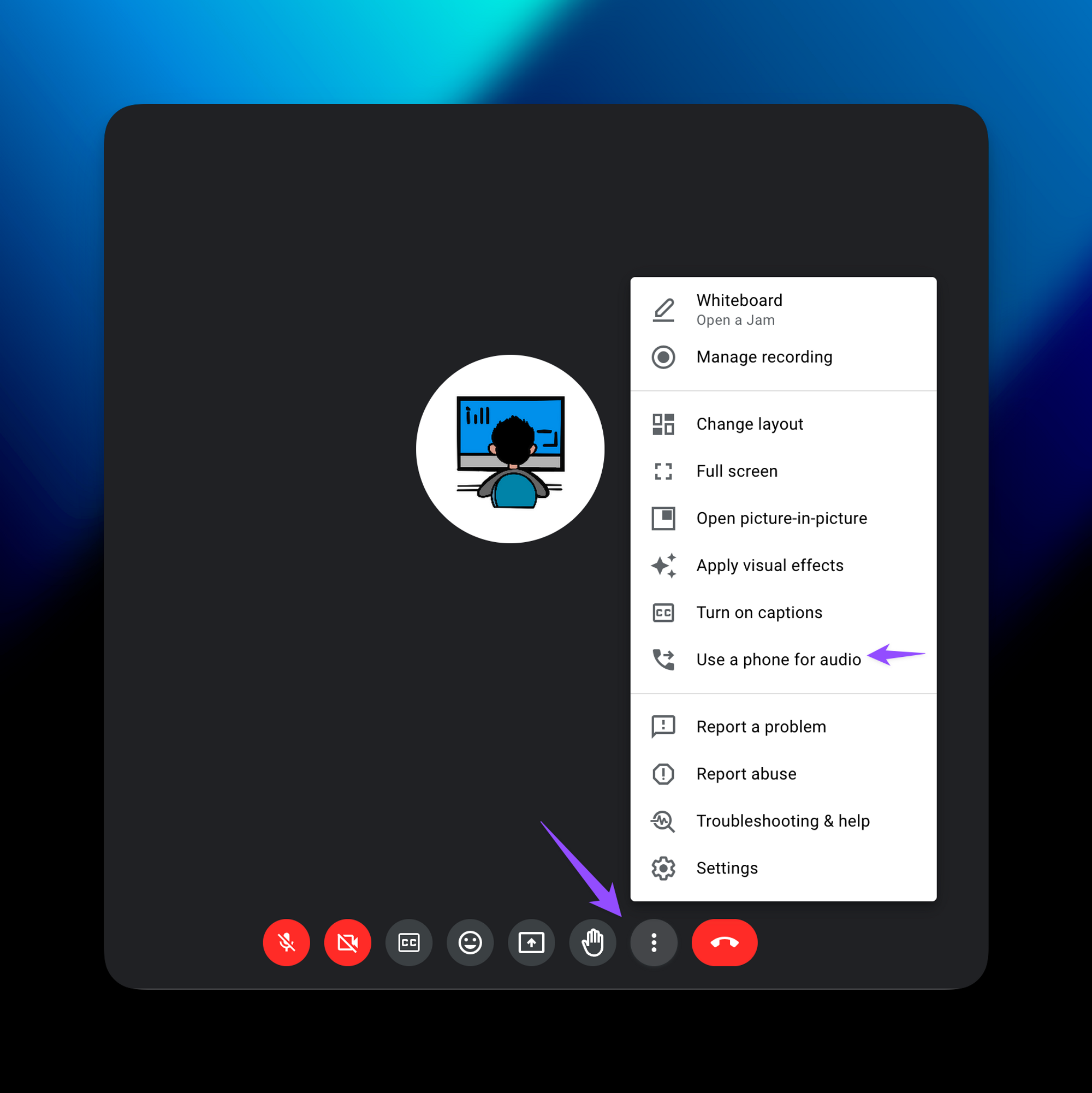 Now when your phone rings, answer and press 1. Your video is still streamed from your laptop but your audio will be from your phone
