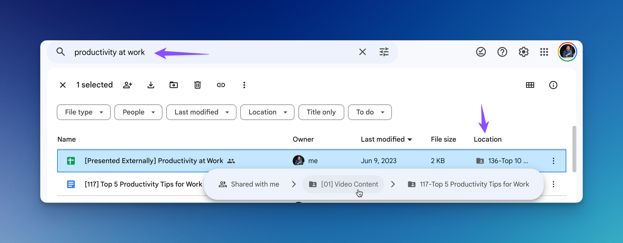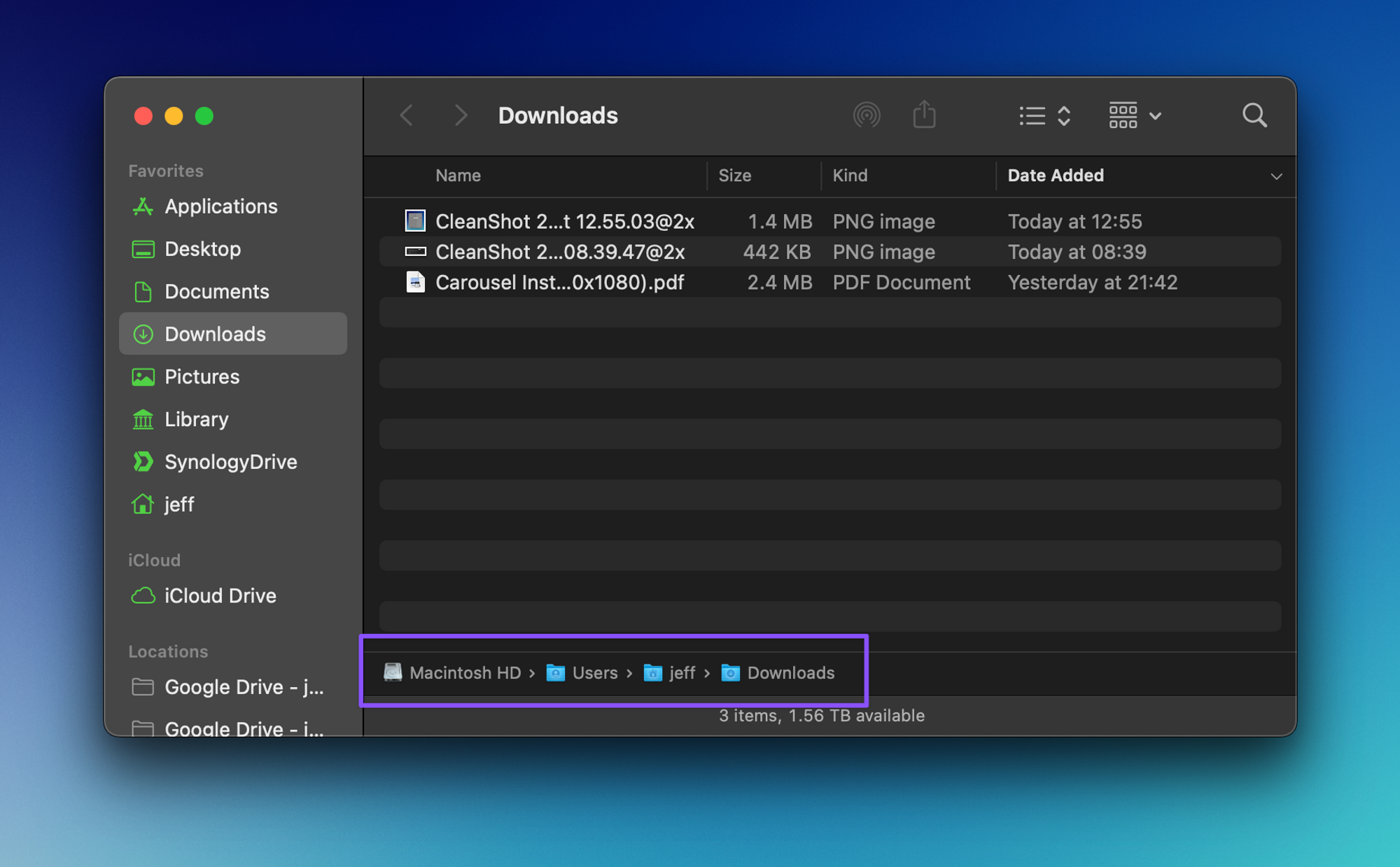 Here, not only can you see exactly where the file resides, but you can also use the bottom path bar to quickly navigate to the correct folder!