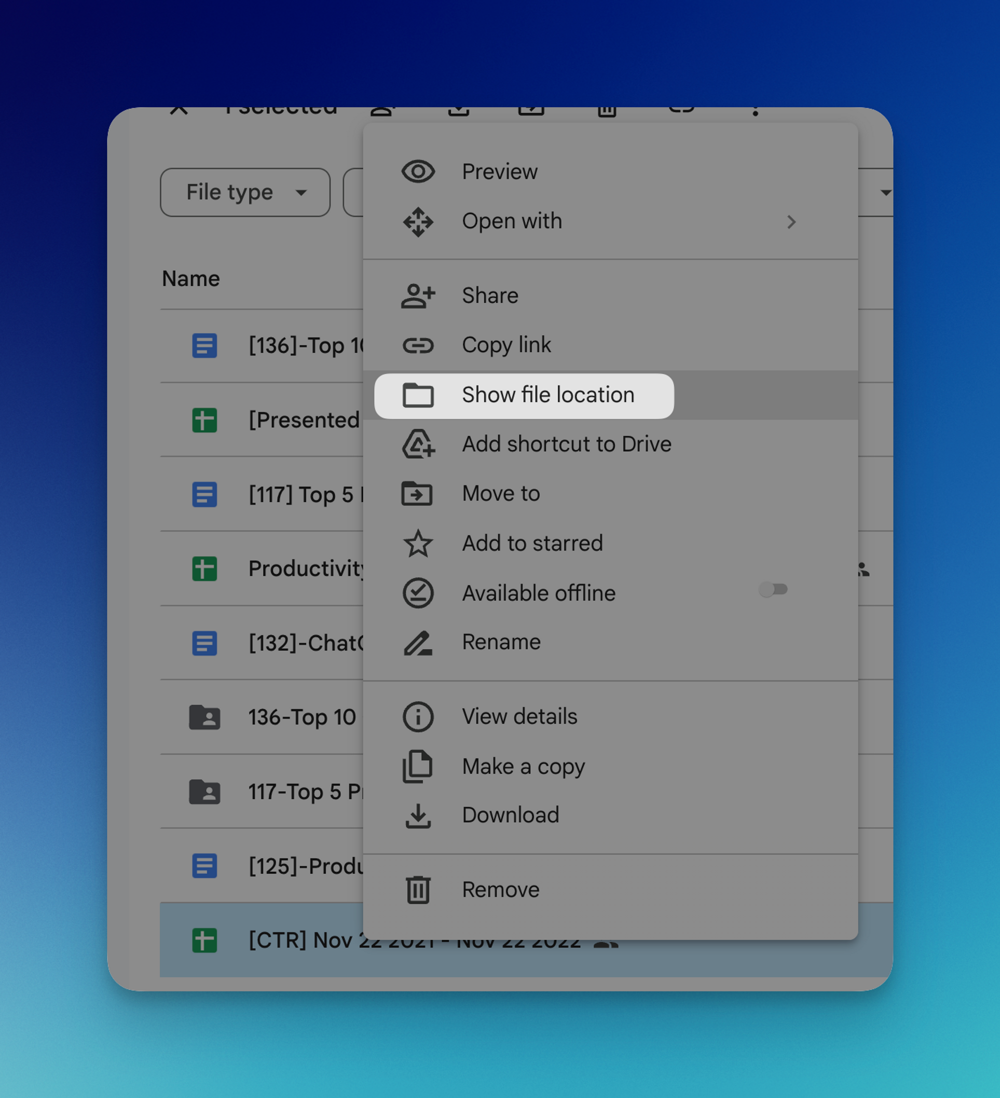 It’s 2023 and somehow Google Drive still needs us to right click > Show File Location