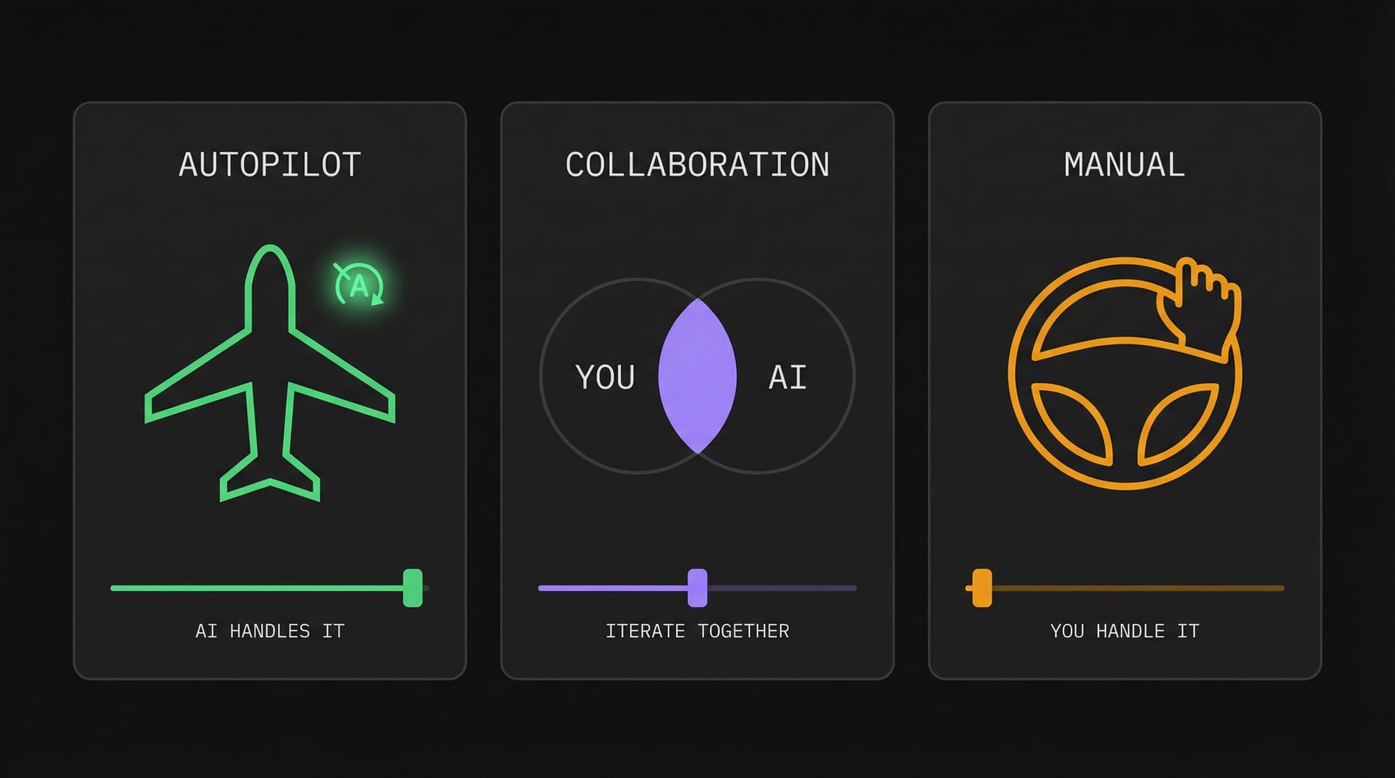 Kicking things off with the most important skill to develop: something I call the Cockpit Rule. It's a mental model for deciding when to delegate a task to AI, when to collaborate with it, and when to keep AI out of the loop entirely.