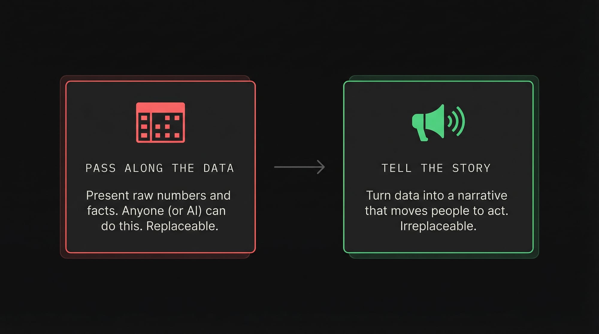 If you can turn data into a story that moves people, you're safe. If you just pass along the data, you're replaceable.