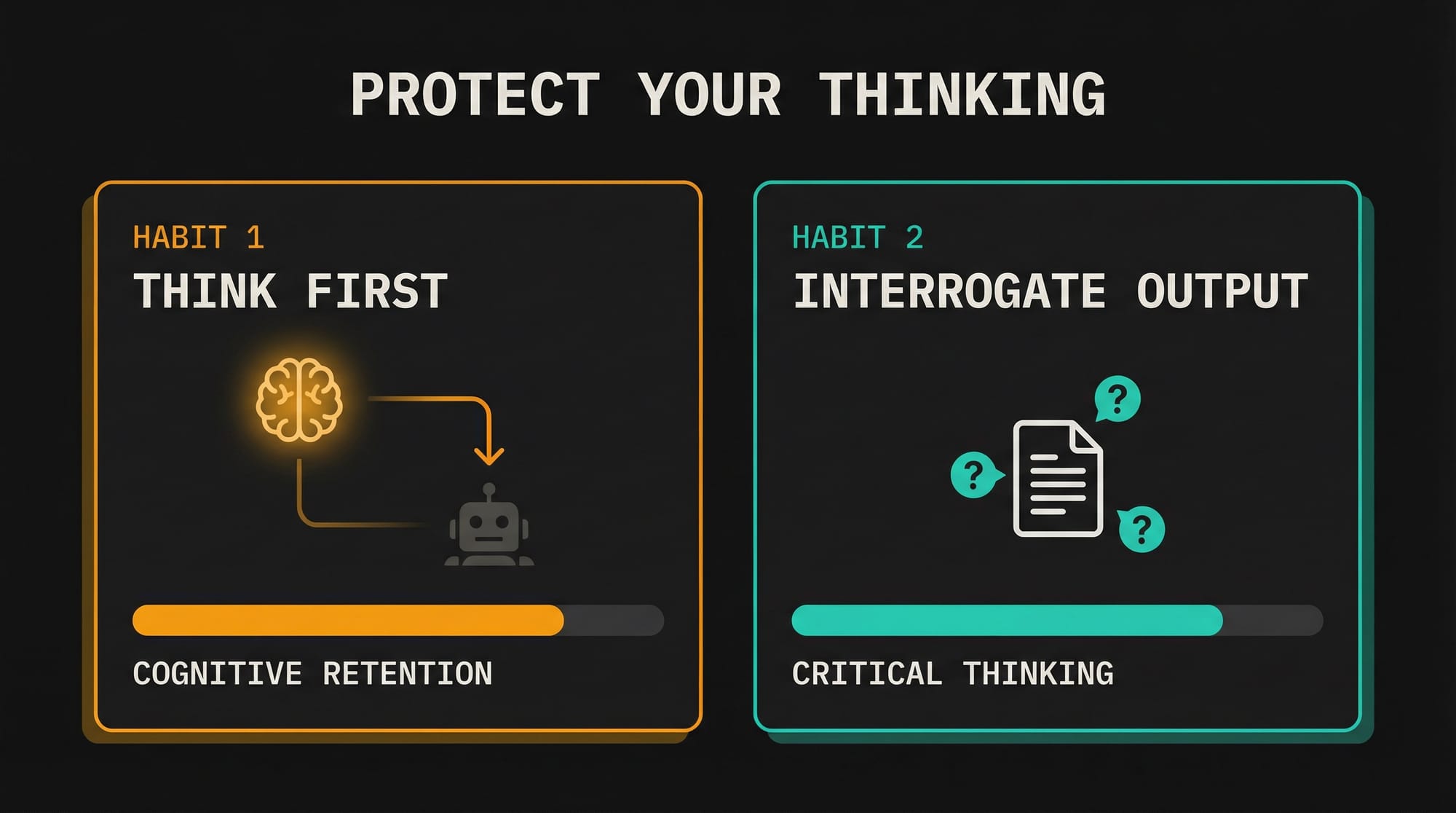 The final skill is about intentionally choosing not to use AI for certain tasks, so that your critical thinking doesn't atrophy.