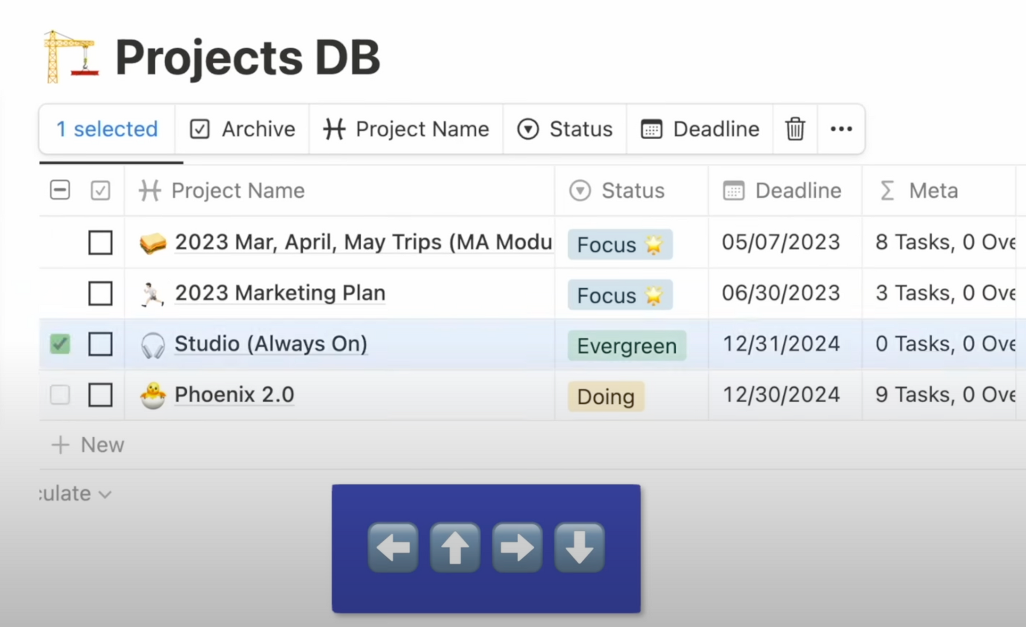 Moving onto databases, I love how Notion basically copied Excel and Google Sheets in that you can press any arrow key to start navigating the table rows, press enter to highlight a cell and <ENTER> again to start editing it, SHIFT + Down arrow key to select multiple cells, and CMD or CTRL + D to paste multiple values at once.