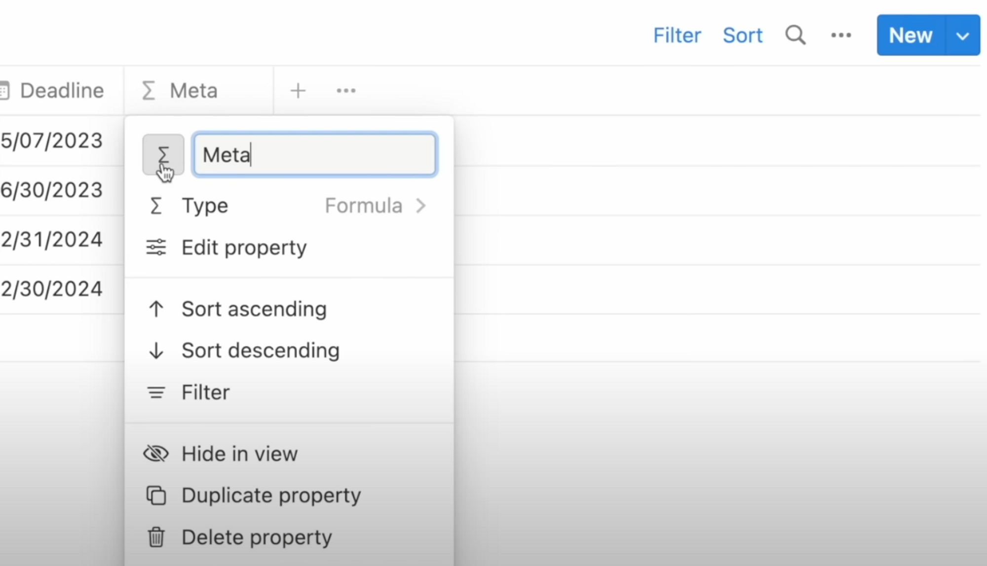 Don’t forget you can customize your column icons by clicking the header and selecting the default icon. You can go full on minimalistic and leave the property field empty and just leave the icon for a cleaner look. But this only works for 1 column per database.