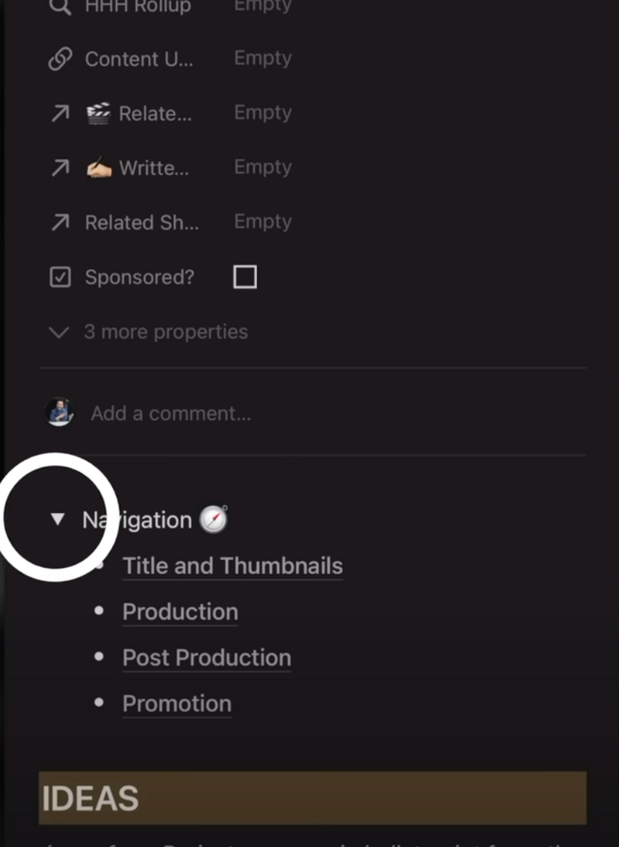 For example, for a page extremely long, what you can do is copy the links to specific blocks throughout the page, scroll all the way back up, and under this navigation toggle, highlight > CMD + V to paste the link to that block.
