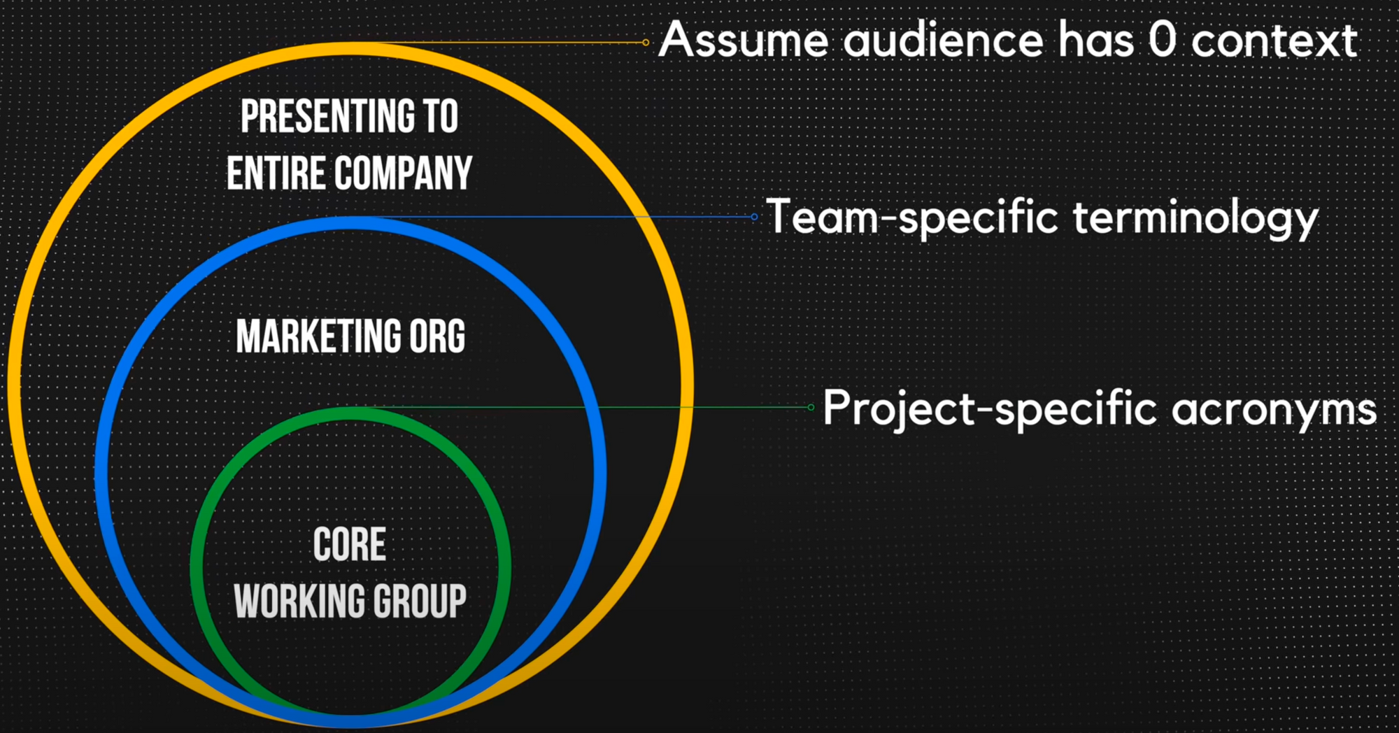 Effective communication is key to successful presentations. To ensure your message reaches everyone in the room, assume the "lowest common language." This means using clear and accessible language that avoids excessive use of acronyms or technical jargon.