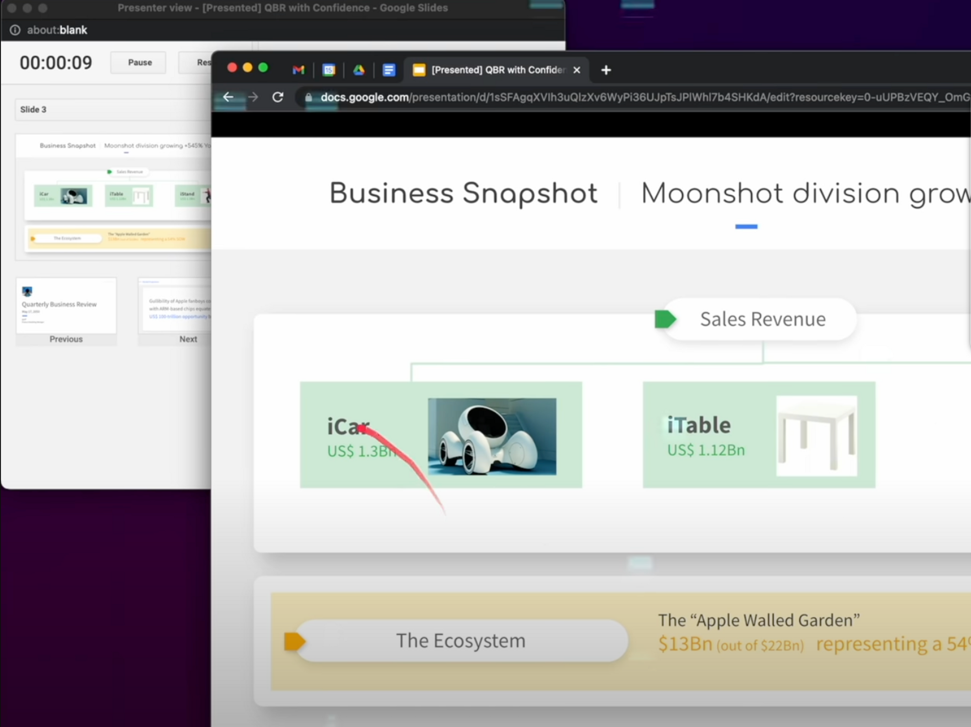 And let's wrap up with a practical gem: while using Google Slides, click the dropdown arrow next to "slideshow" and select "Presenter view."
