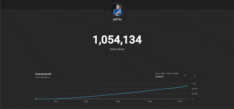 Hey friends - I uploaded my first YouTube video on June 3rd, 2020, earning a grand total of 327 views. Five years later, I've surpassed 1M subscribers and average 2M views monthly.