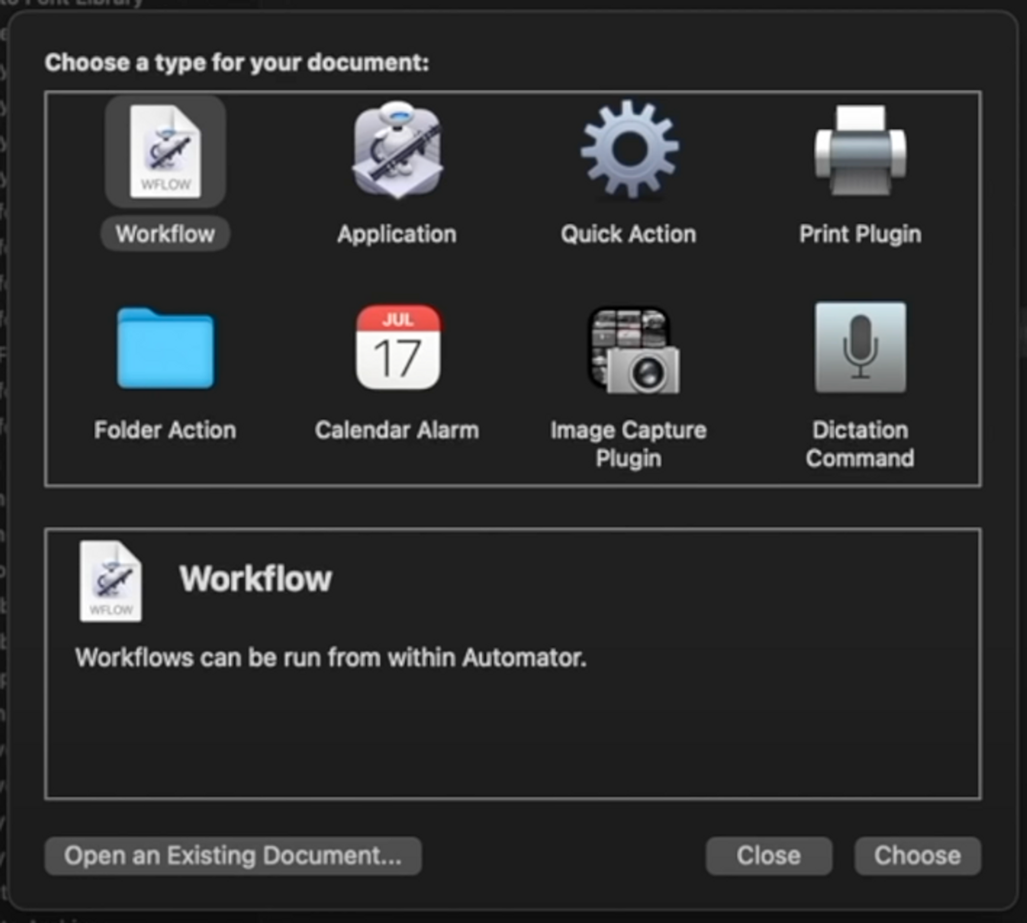 If you open up Automator, file > New, you’ll be greeted with this seemingly complicated menu. But don’t worry, I’m going to show you a very practical use case: where downloaded documents are automatically moved to specific folders based on a rule you create.