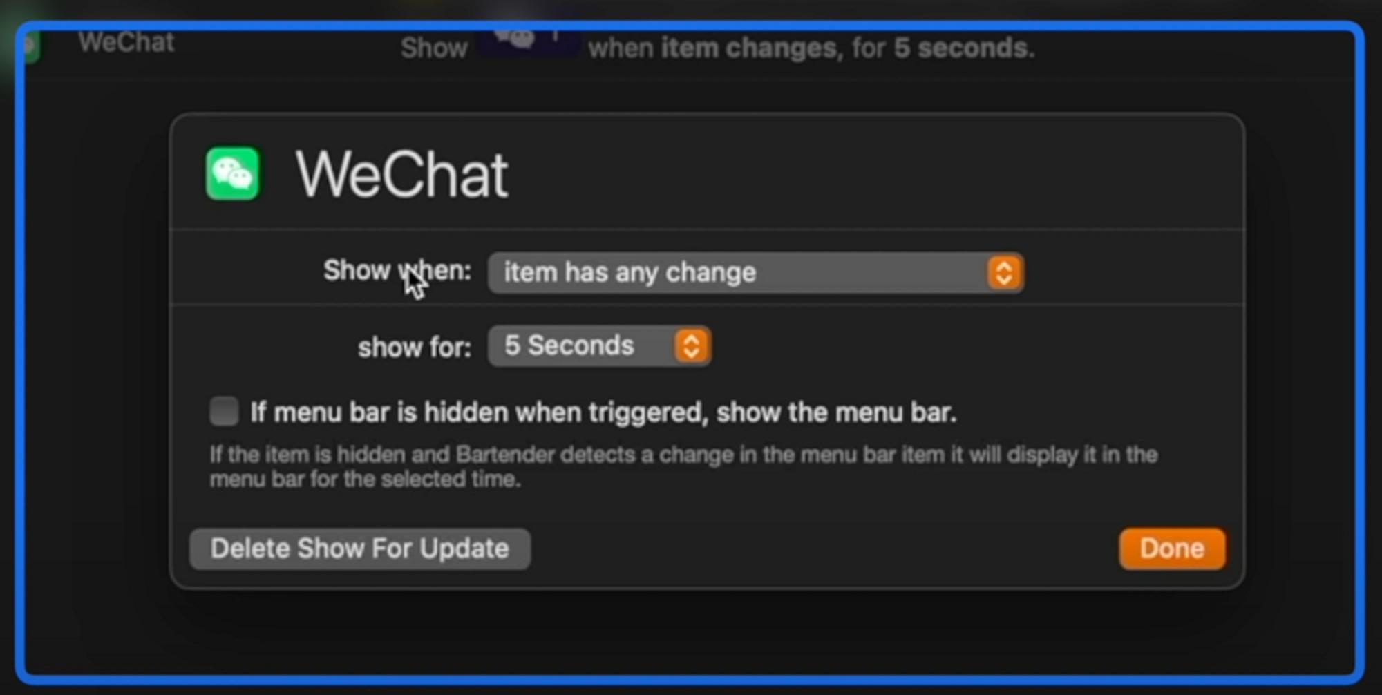 Now what I find super useful is the “Show For Updates” tab. Basically you can set a rule where if a condition is triggered, that app icon will appear for a brief period of time before being hidden again! For example:
